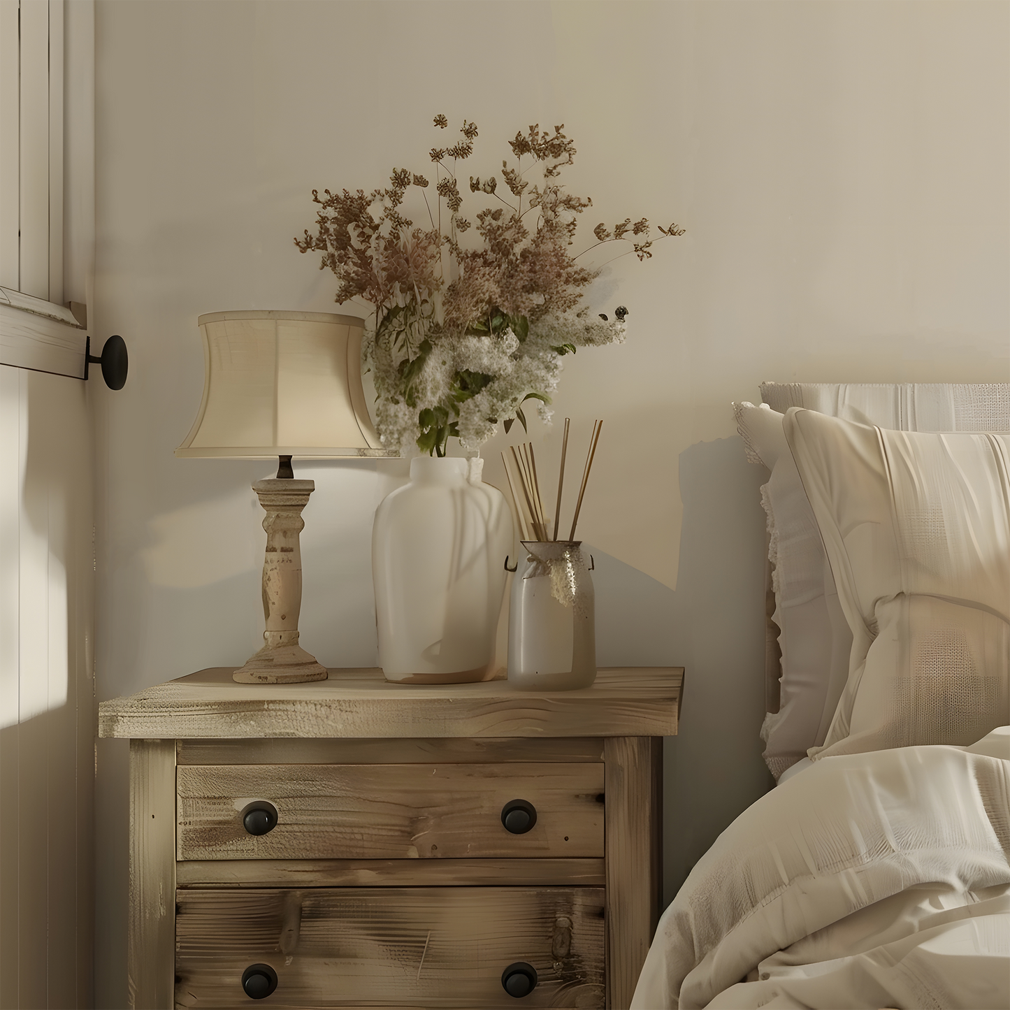 The Grace wallpaper combines delicate ditsy florals with subtle miniature polka dots to create a soft, vintage-inspired pattern. Its dainty design lends an elegant and timeless touch, ideal for enhancing interiors with a sophisticated and gentle charm.